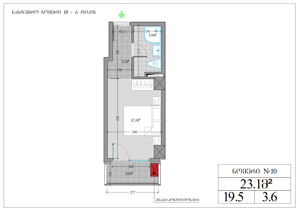 - საზაფხულო ფართი : 3.6 კვ.მ