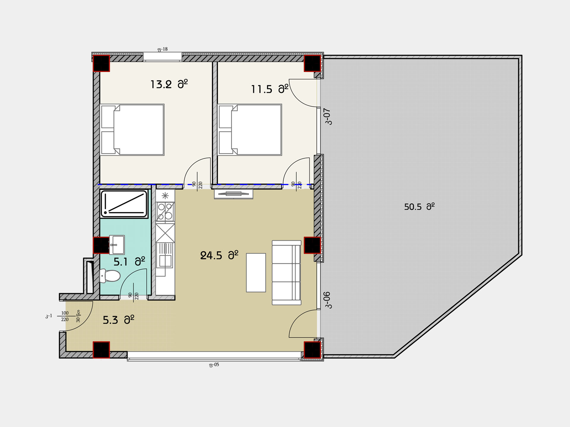 - საზაფხულო ფართი : 50.5 კვ.მ