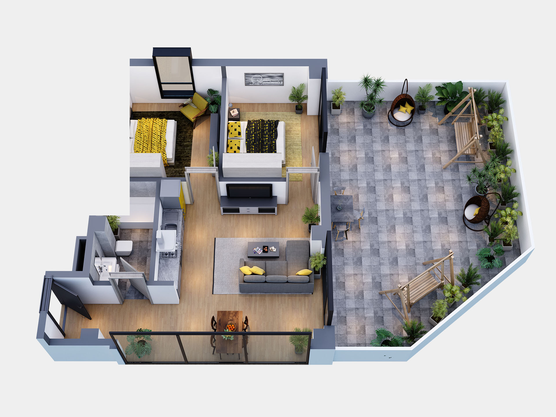 - საცხოვრებელი ფართი : 60.8 კვ.მ