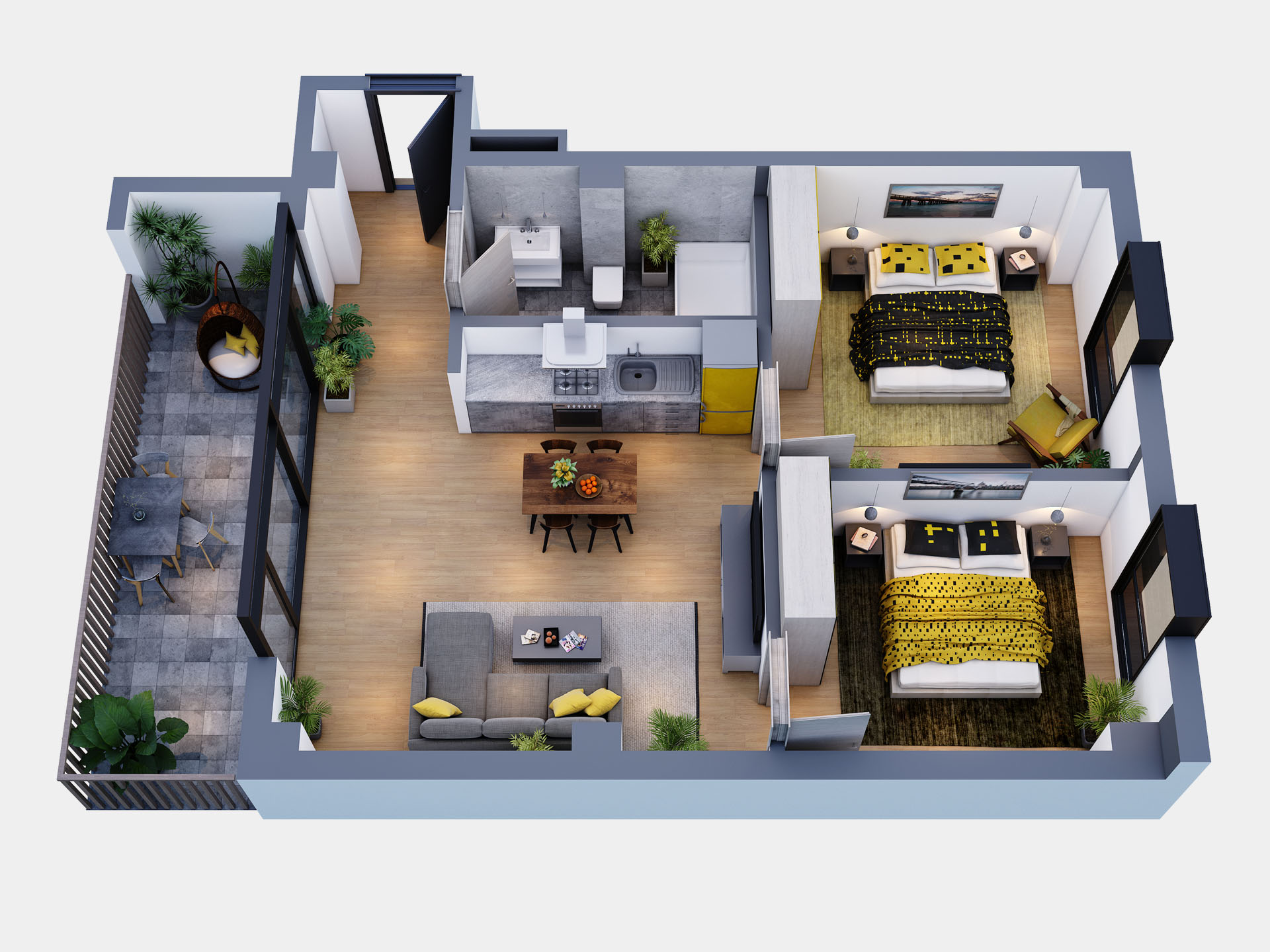- საცხოვრებელი ფართი : 60.8 კვ.მ