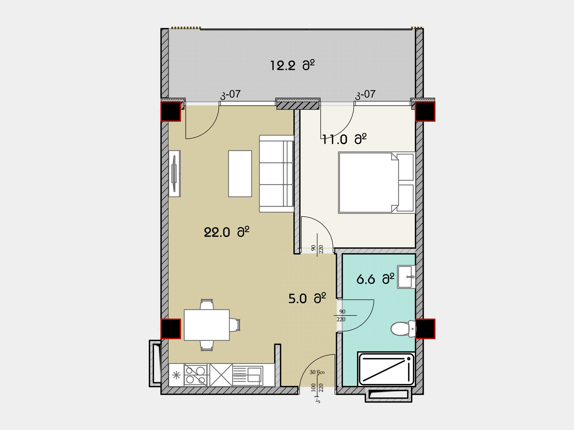 - საზაფხულო ფართი : 12.2 კვ.მ