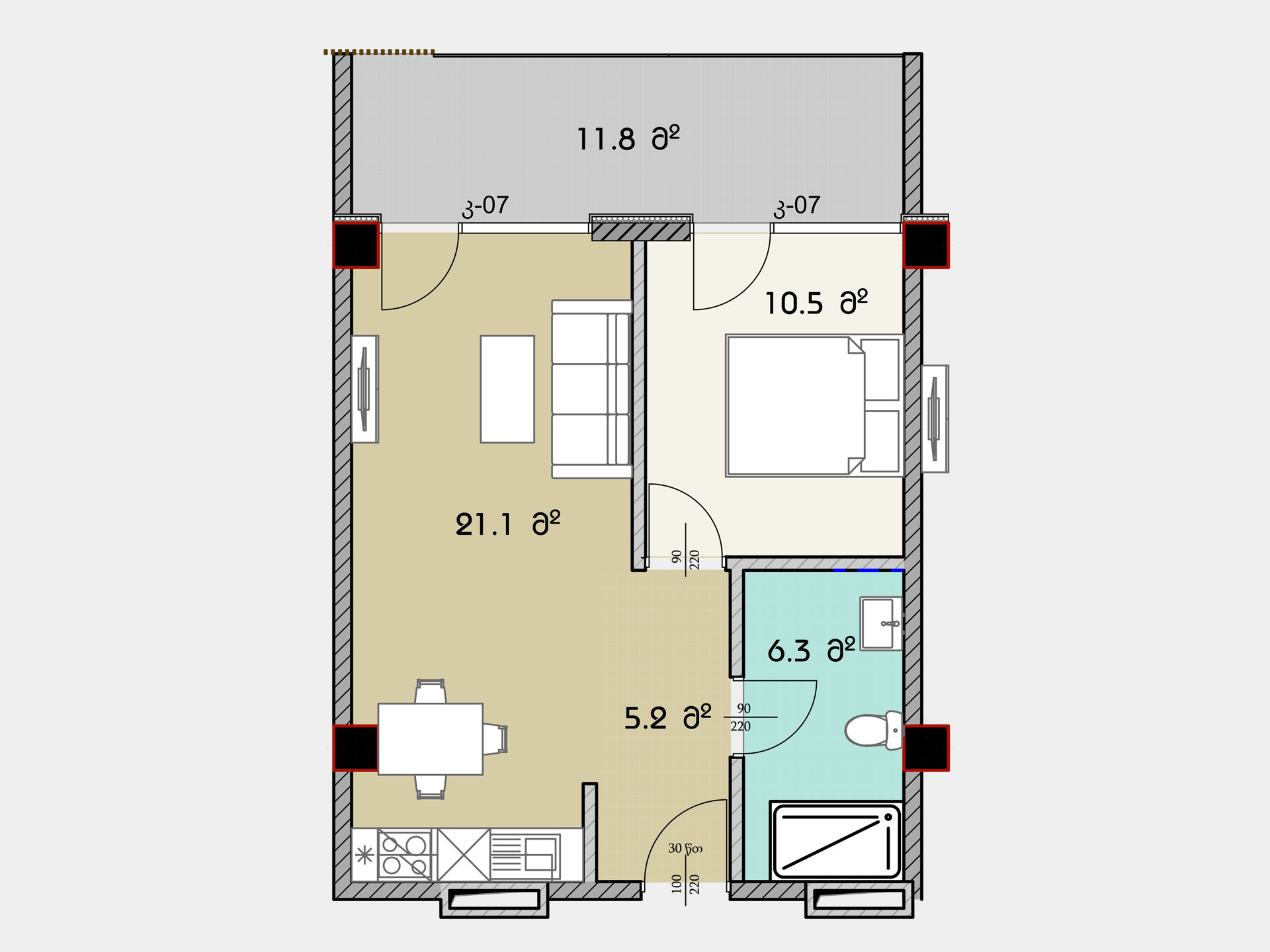 - საზაფხულო ფართი : 11.8 კვ.მ