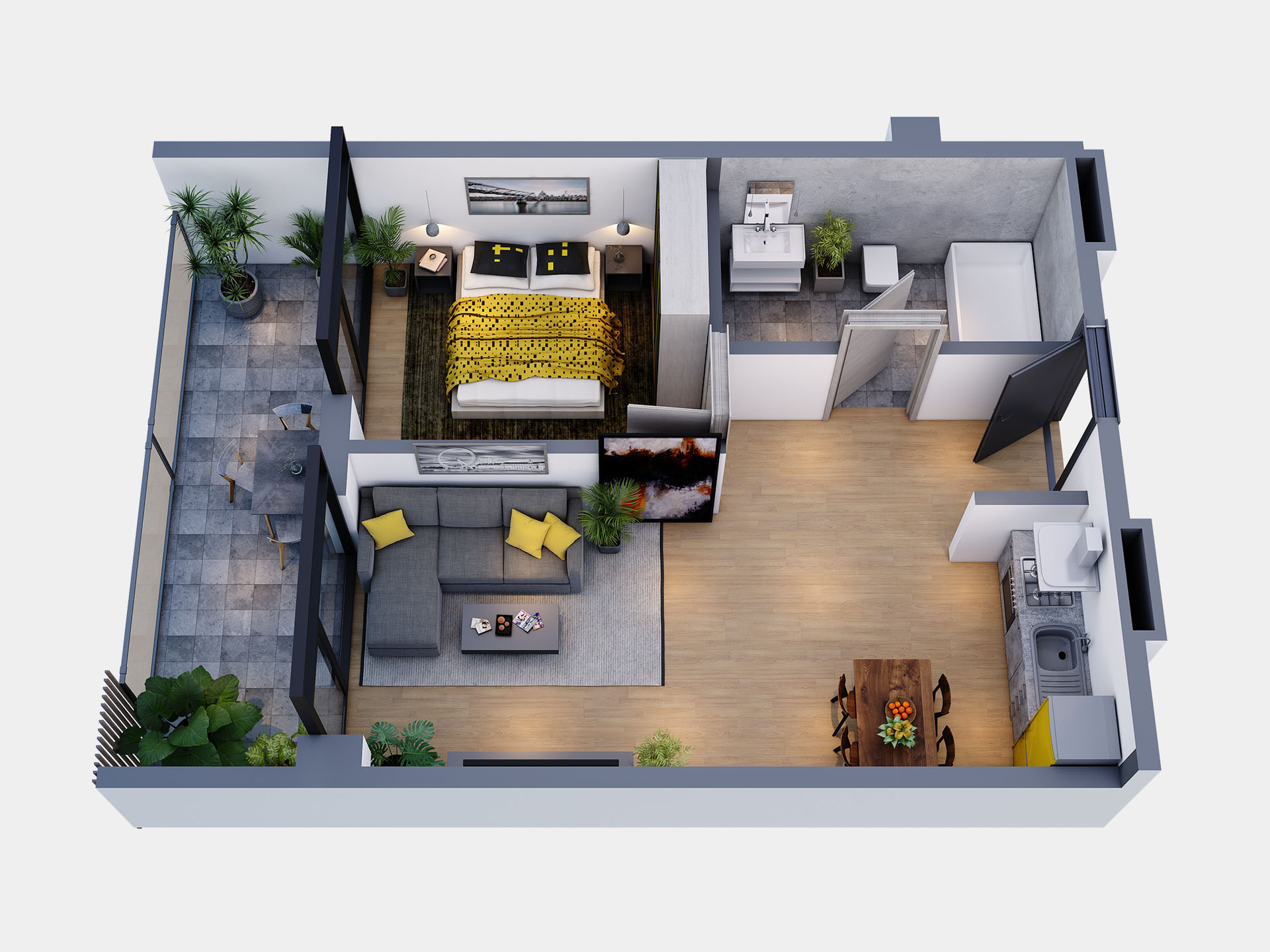 - საცხოვრებელი ფართი : 44.4 კვ.მ