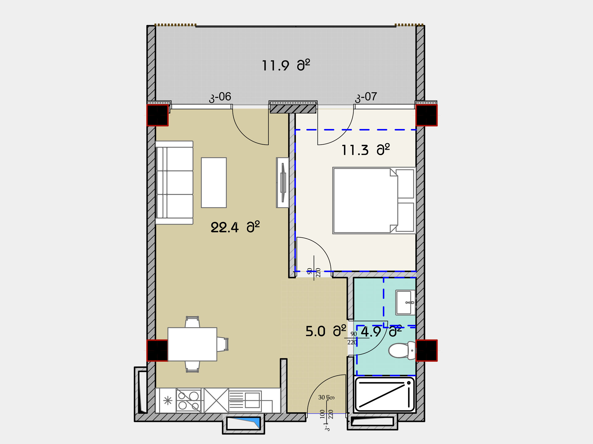- საზაფხულო ფართი : 11.9 კვ.მ
