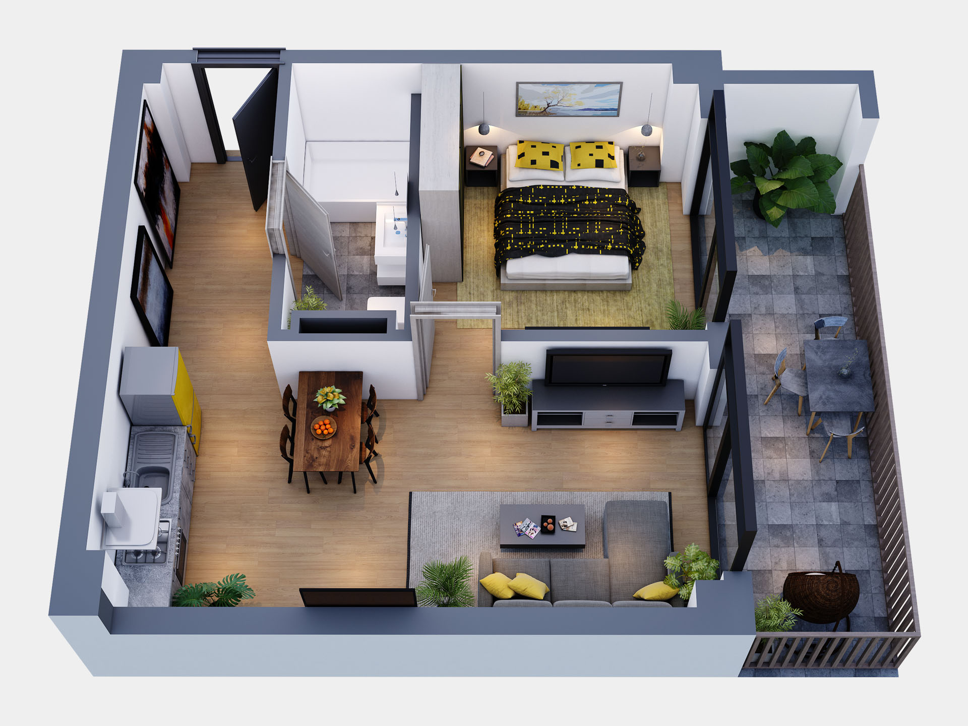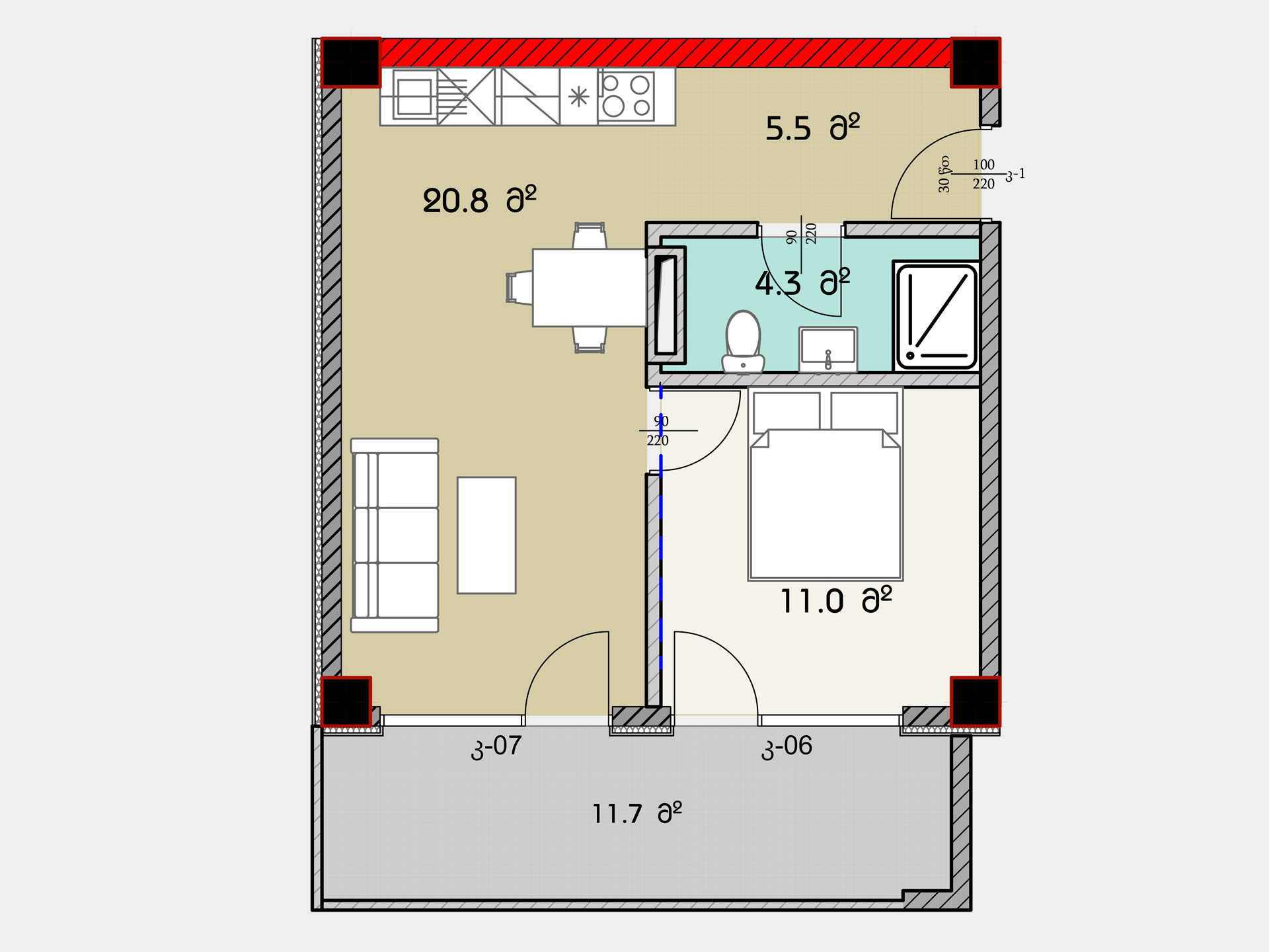 - საცხოვრებელი ფართი : 42.8 კვ.მ