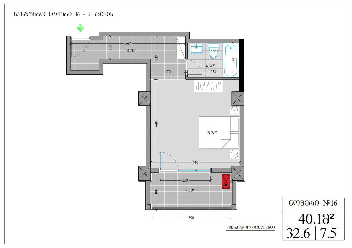 - საცხოვრებელი ფართი : 32.6 კვ.მ