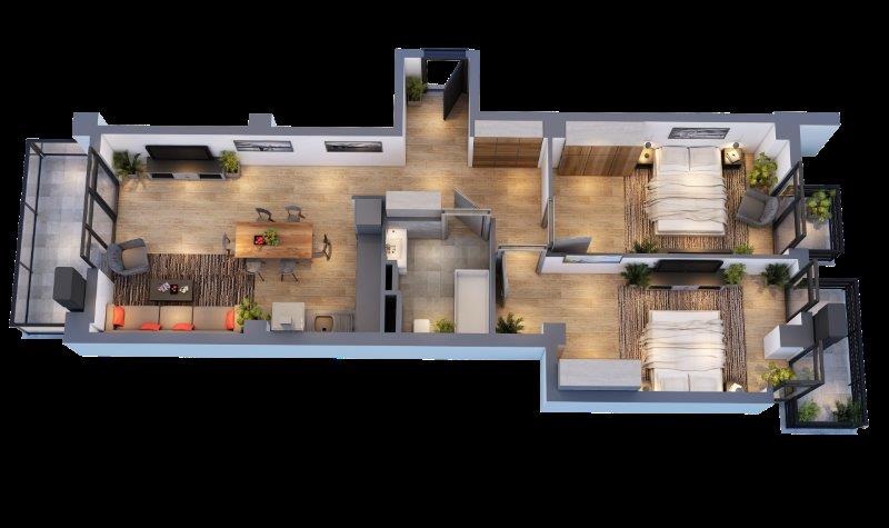 - საერთო სივრცე : 44.6 კვ.მ