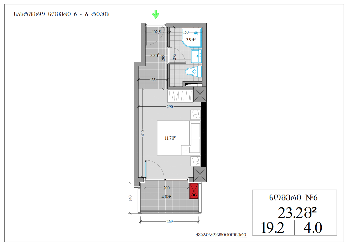 - საცხოვრებელი ფართი : 19.2 კვ.მ