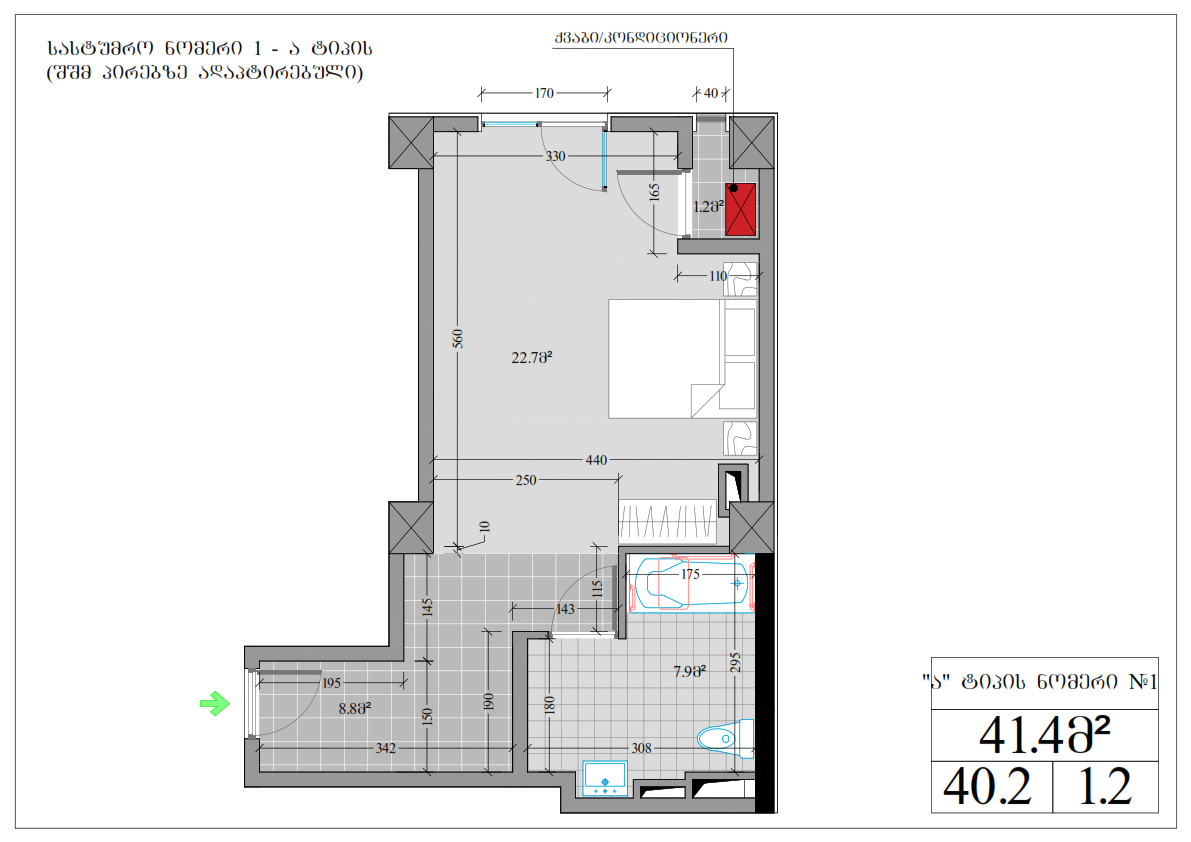- საზაფხულო ფართი : 3.4 კვ.მ