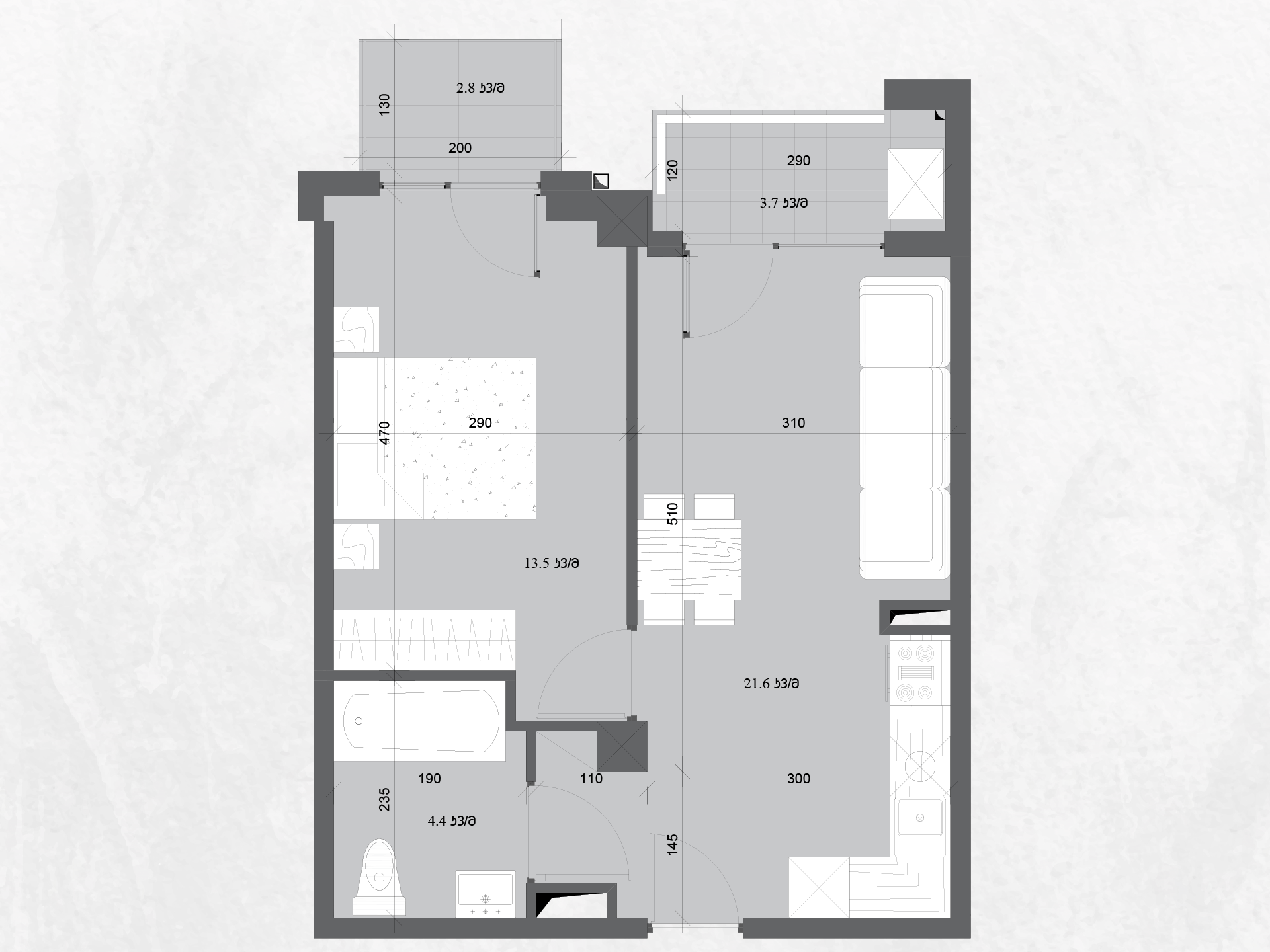 - საცხოვრებელი ფართი : 41.2 კვ.მ