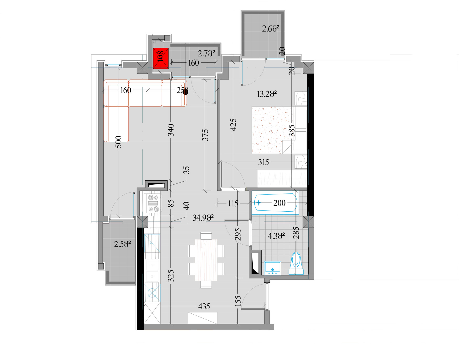 - საცხოვრებელი ფართი : 55.3 კვ.მ