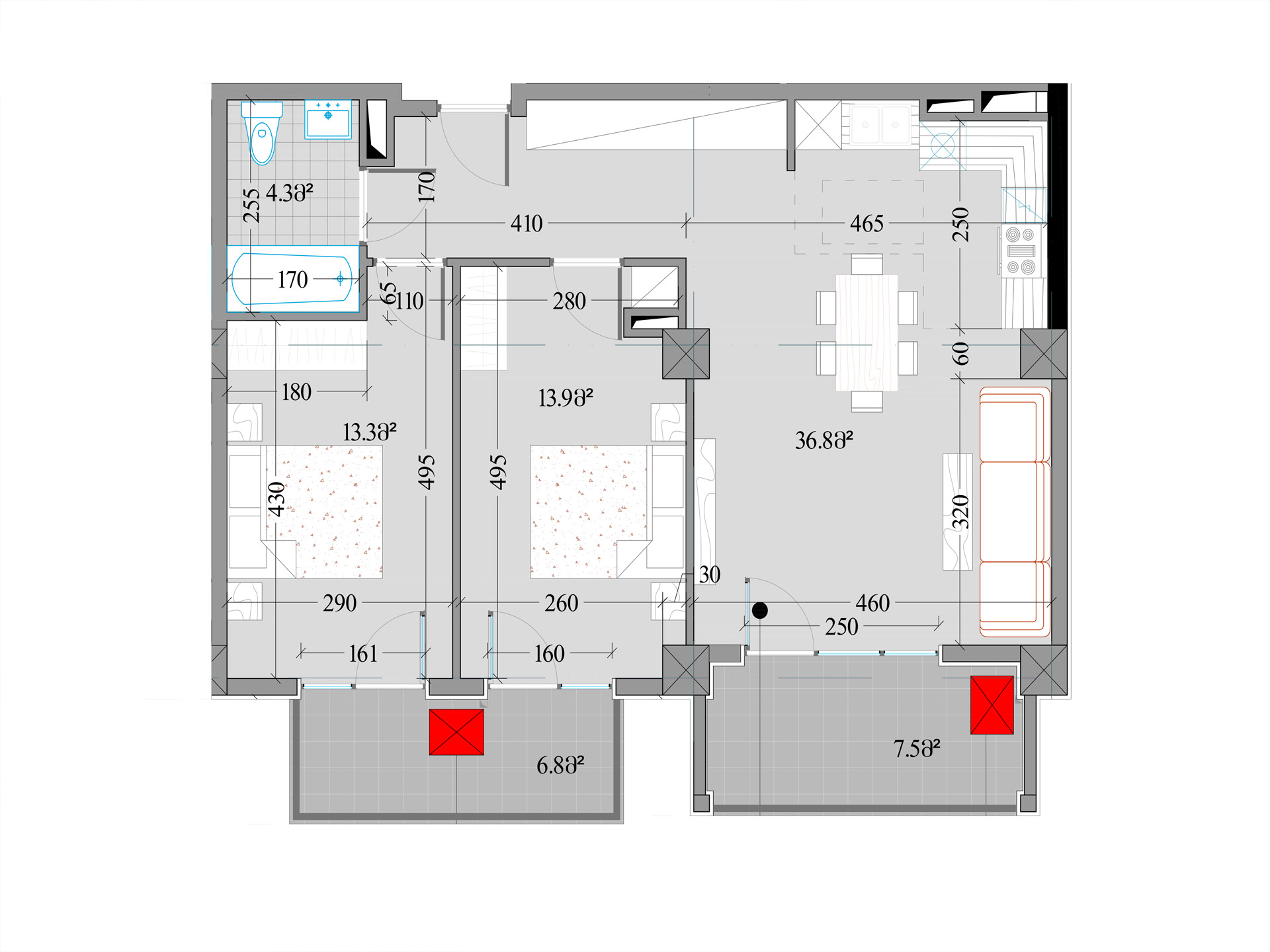 - საცხოვრებელი ფართი : 69.8 კვ.მ