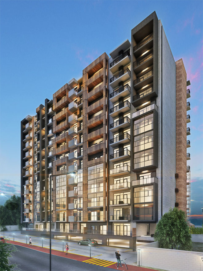 კორპუსში იქნება 140 ბინა (43-150 კვ.მ).შენობას მოემსახურება 2 ლიფტი, ერთი სამგზავრო ზომის, ხოლო მეორე სატვირთო ზომის. ორივე იქნება უმაღლესი ხარისხის ბრენდის. სახლს გააჩნია მიწისქვეშა 21 შიდა საპარკინგე ადგილი, რომლებიც გაყიდვაშია. გარდა შიდა პარკინგისა, პროექტს გააჩნია საერთო მოხმარების 30 ღია საპარკინგე ადგილი. ეზოში შესასვლელი და გასასვლელი დარეგულირდება შლაგბაუმით. პროექტში გათვალისწინებულია 1000 კვ. მეტრზე კეთილმოწობილი ეზო, რომელიც მოიცავს 28 ახალ ნერგს, საბავშვო მოედანს და მოსასვენებელ ადგილებს.